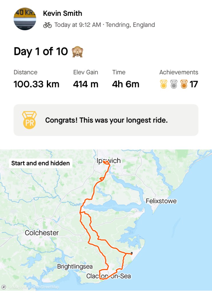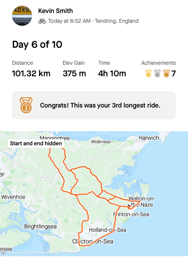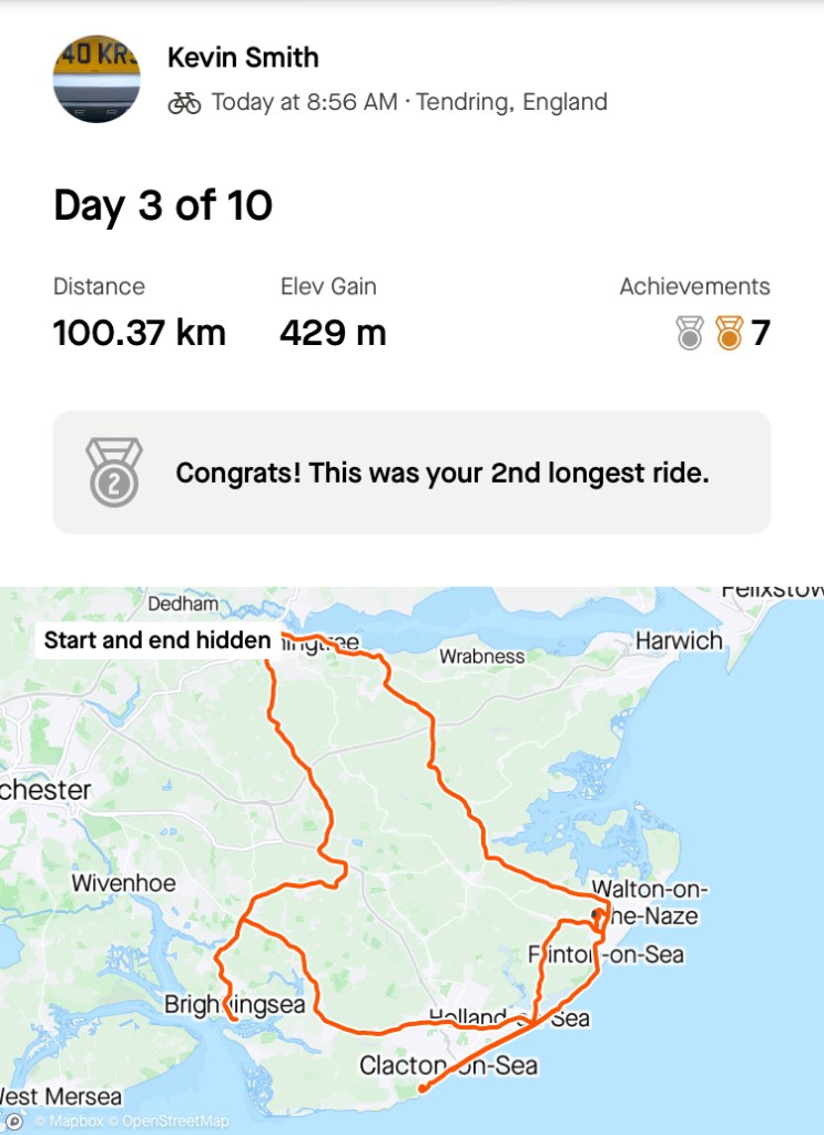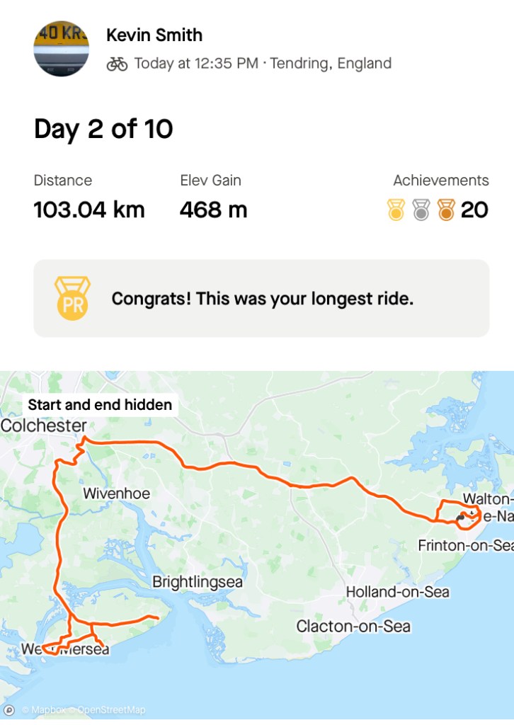 So, day 4 all done, tomorrow sees me head over to Harwich to meet up with another amazing man who is going to join me out on the road for 10km’s or so and I can’t wait for it.