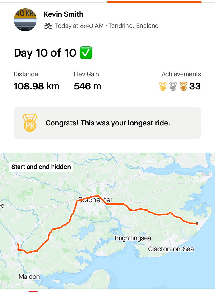 Anyway, through gritted teeth the last leg of the journey got completed and I was relieved to arrive home with the 100km goal just about achieved.