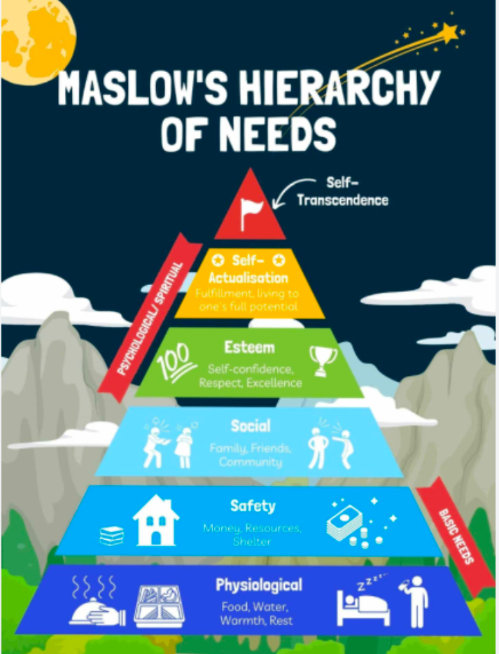 Maslow’s Hierarchy of Needs is a model that can inspire positive pathways, recognising that we have our basic needs covered can offer some positive acceptance, allowing us to build further with security, belonging, contentment and confidence, leading to real momentum.
